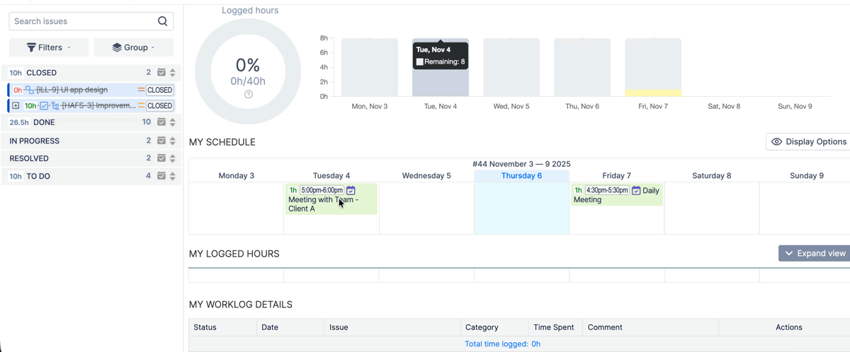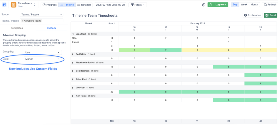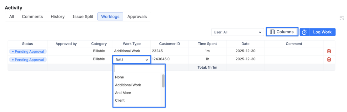Propojení plánovaných hodin s reálnými worklogy a možnost využití přizpůsobitelných polí ve worklogu zvyšují kvalitu dat. Organizace tak mohou lépe vyhodnocovat efektivitu, odhalovat odchylky a zpřesňovat budoucí odhady.