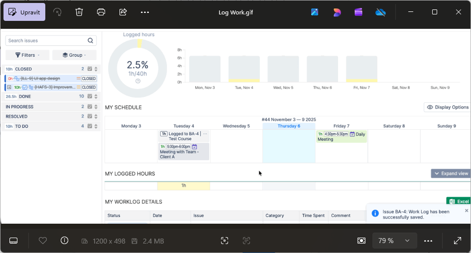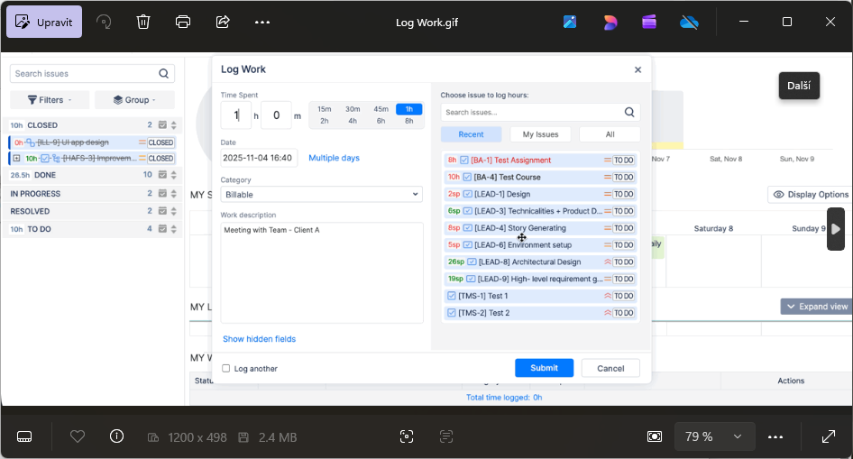 2) Práce s worklogy (logováním času)