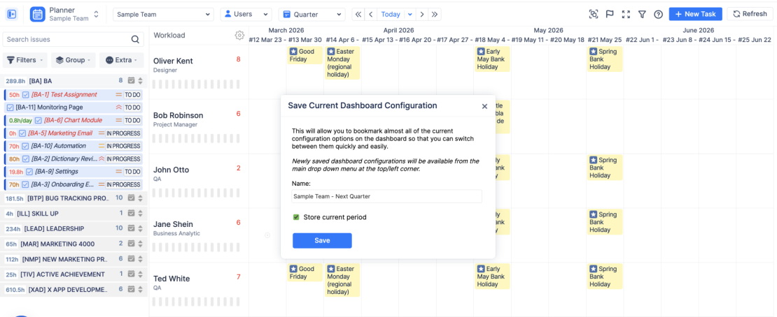 Ruční řazení členů týmů a ukládání nastavení dashboardů šetří čas při opakovaném plánování. Personalizované pohledy umožňují rychlejší orientaci a lepší přehled o prioritních zdrojích.