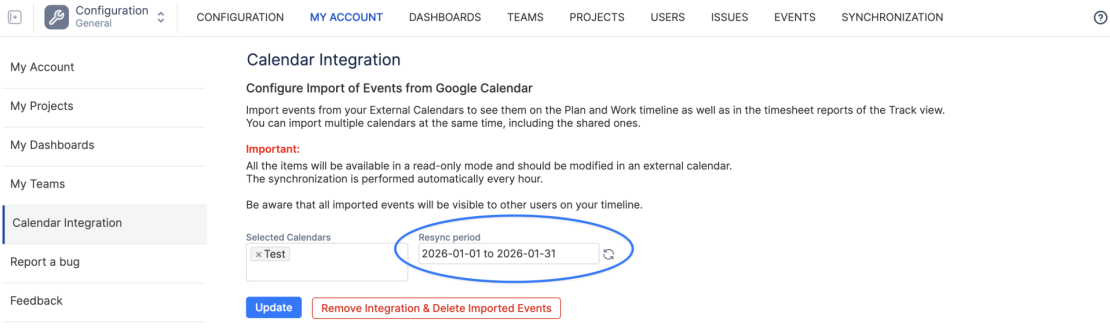 Re-sync kalendáře na vybrané období: problémové synchronizace lze snadno obnovit pro konkrétní časový úsek.