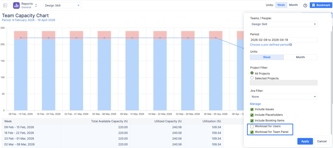 Integrace iCal kalendářů (např. Outlook) a nový třítýdenní pohled na timeline umožňují realističtější plánování. Do kapacit se promítají i externí schůzky, dovolené nebo jiné blokace, což snižuje riziko přetížení týmů.